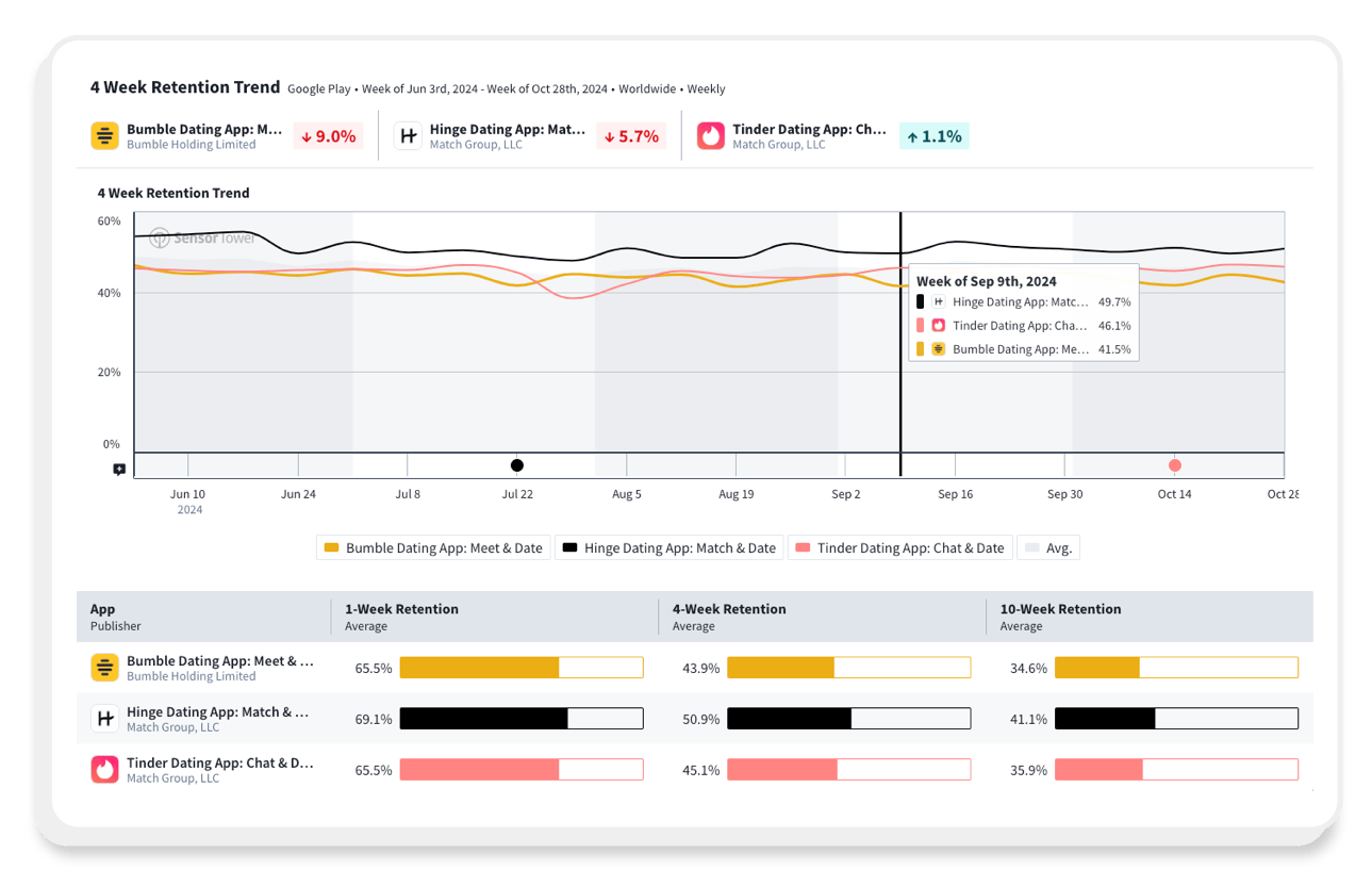 Define engagement benchmarks and churn behaviors for specific user segments using real-life data. Measure app performance against broader categories, identify user groups inclined to certain apps, and uncover week-over-week and month-over-month retention insights for major apps.