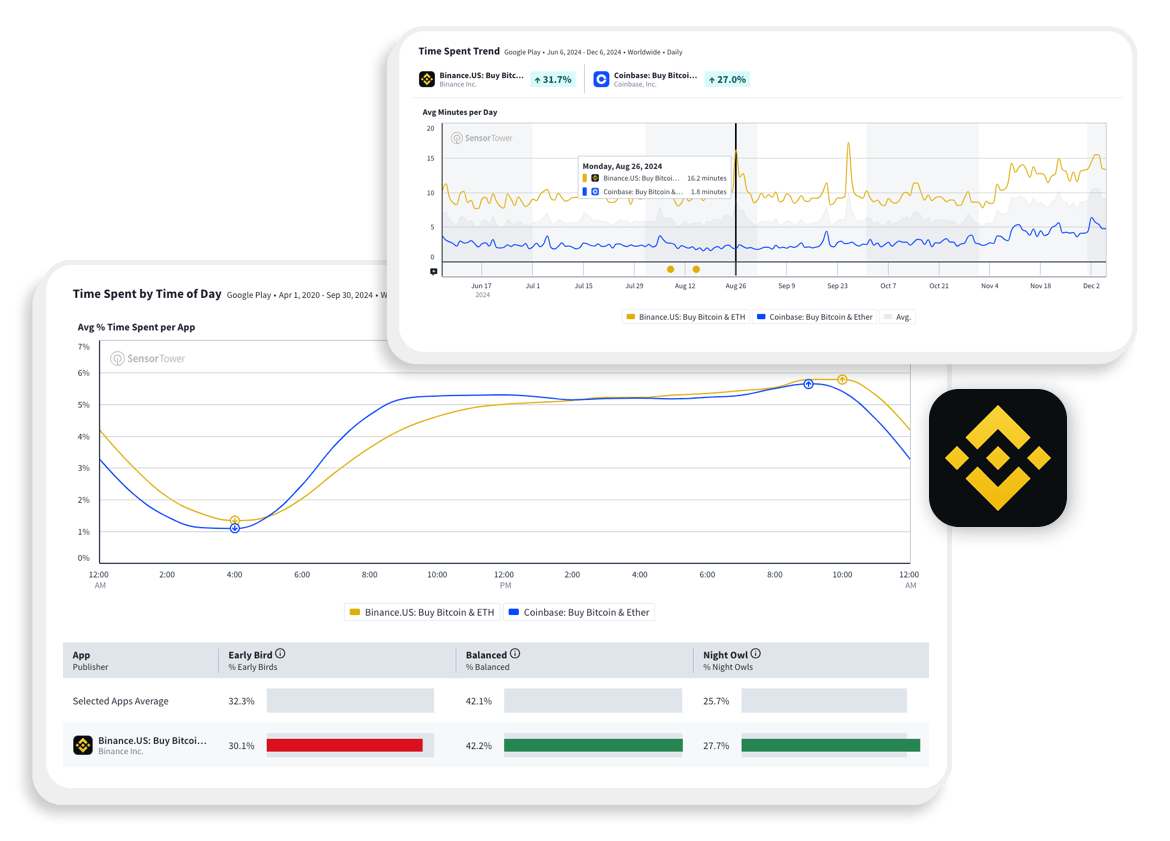 Gain deep insights into user behavior with our proprietary panel. Analyze how users engage with apps hourly, compare usage across similar app categories, and explore differences between regional and global audiences.