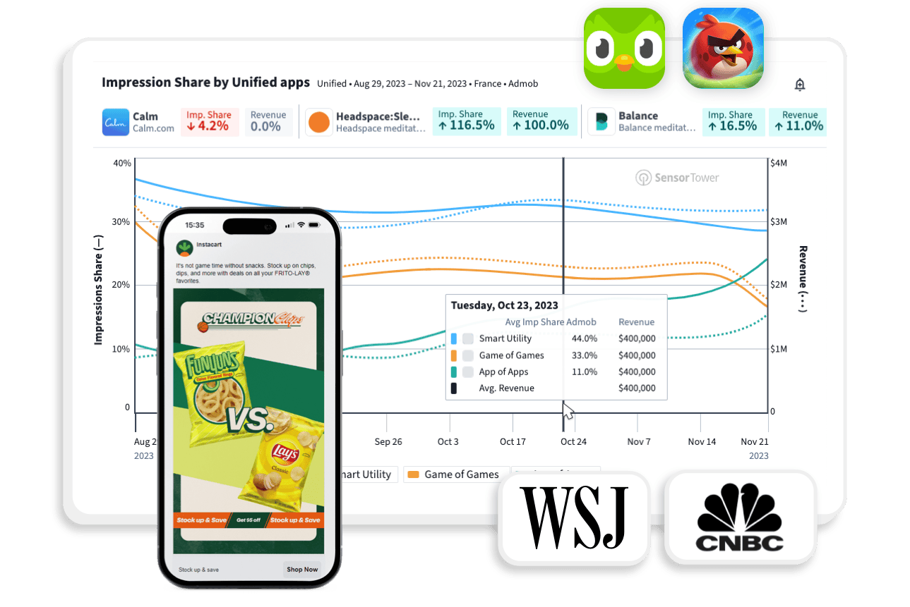 Sensor Tower delivers rich market insights into the trends shaping the global digital economy by using data from our proprietary panel, first party data, and publicly available data, like earnings releases. Since no dataset represents 100% of all digital user behavior, we model our data to estimate how the global population engages online. We use AI to tag ad creatives and apps at scale, and a combination of modeling and machine learning to fit our models and deliver the most accurate estimates possible.